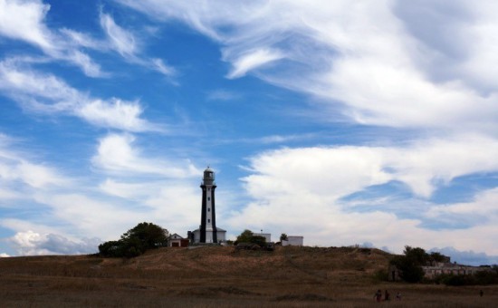 Маяк, что одиноко возвышается на южном мысе Керченского полуострова Кыз-Аул.