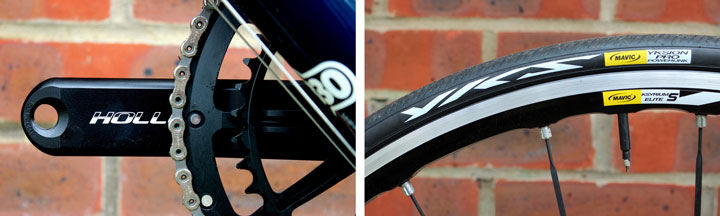 Колеса классические: 28-дюймового размера. Они сконструированы на базе гоночных двойных ободах из алюминия Mavic Ksyrium Elite S WTS (1,520 грамм) с низкопрофильными покрышками Mavic модели Yksion Pro. Общий вес велосипеда (включая все компоненты) составляет 6,4 кг.